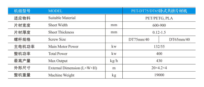 臥式共擠塑料片材機主要適用于PP、PE、ABS、EVA、HIPS等原料,生產各種高檔片材。
